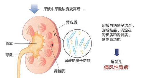因此,痛風(fēng)和腎臟病變互為因果,相互影響。