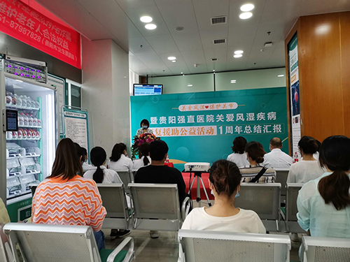 風(fēng)濕免疫疾病作為高致殘率的慢性病,一直是殘疾預(yù)防工作的重點(diǎn)。很多風(fēng)濕患者由于患有此病并未得到及時(shí)的救治導(dǎo)致肢體殘疾而喪失勞動(dòng)力,因病致殘,因殘返貧的現(xiàn)象比比皆是,然而,就目前我國(guó)的醫(yī)保報(bào)銷(xiāo)范圍和政策來(lái)說(shuō),風(fēng)濕骨病的眾多診療類(lèi)目是不在國(guó)家醫(yī)保報(bào)銷(xiāo)范圍之內(nèi)的,這無(wú)疑大大增加了全省600萬(wàn)風(fēng)濕患者的家庭經(jīng)濟(jì)負(fù)擔(dān)。為幫助更多因病致殘,因殘致貧,以及家庭困難的風(fēng)濕患者早日擺脫病痛走向康復(fù),2021年7月4日,貴陽(yáng)強(qiáng)直醫(yī)院聯(lián)合貴州廣播電視臺(tái)《百姓關(guān)注》欄目特別舉行了一場(chǎng)向全省征集6名痛風(fēng)、類(lèi)風(fēng)濕患者全額免費(fèi)救助的大型公益活動(dòng)。時(shí)光荏苒,時(shí)值援助活動(dòng)開(kāi)展一周年之際,2022年7月2日,貴陽(yáng)強(qiáng)直醫(yī)院在該院大廳對(duì)2021年開(kāi)展的公益救助活動(dòng)情況做周年匯報(bào)總結(jié)。