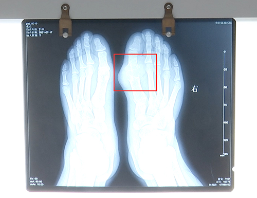 然而,由于經(jīng)濟(jì)困難,張亮并沒(méi)有對(duì)自身的疾病進(jìn)行規(guī)范化的治療,短短4年的時(shí)間,張亮體內(nèi)的尿酸鹽結(jié)晶已經(jīng)從開(kāi)始的一個(gè)跖趾關(guān)節(jié)發(fā)展到了全身各大關(guān)節(jié)。從DR影像顯示,張亮右足趾關(guān)節(jié)(大腳趾關(guān)節(jié))也長(zhǎng)出了如核桃大小的痛風(fēng)石,且該處骨質(zhì)已經(jīng)被痛風(fēng)石完全腐蝕,可能會(huì)面臨截肢。