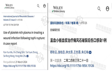 此次《國際風濕病雜志》收錄我院SCI文章《富血小板血漿治療痛風石破裂后傷口感染1例》,標志著我院在痛風、痛風石臨床診治及... [詳情]